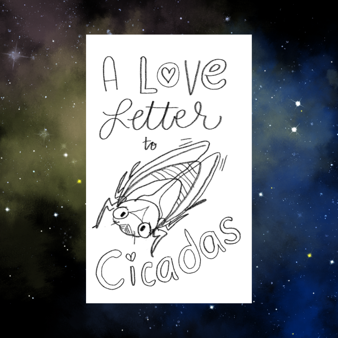They are loud, bumbling, and come out in the millions every few years somewhere in the United States, and I love them dearly. Cicadas have followed me throughout my life, from the annual cicadas that sing each July to the periodical (or brood) cicadas that blanket the trees and fill the air every 13 or 17 years. In this 9-page zine (plus the backside!), learn why I love them so. Folded from a single sheet of 32-lb copy paper.