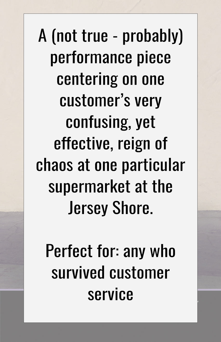 An eclectic blend of experiences from the New Jersey Shop'NBag, a supermarket at the Jersey Shore, The Legend of Dave Bradley celebrates the horrors that only exist in customer service.